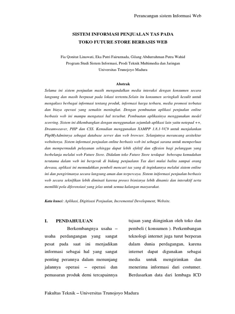 24 Pondok Labu Jakarta Selatan adjatajtbsiacid Robi Sopandi. Qomaruddin STMIK Nusa Mandiri Jakarta Jl. Contoh proposal skripsi sistem informasi penjualan berbasis webSistem ini akan dikembangkan dengan metodologi FAST Framework for the Aplication of System Thinking Whitten 2004 dan dimplementasikan dengan menggunakan JSP Java Server Page dan Mysql.