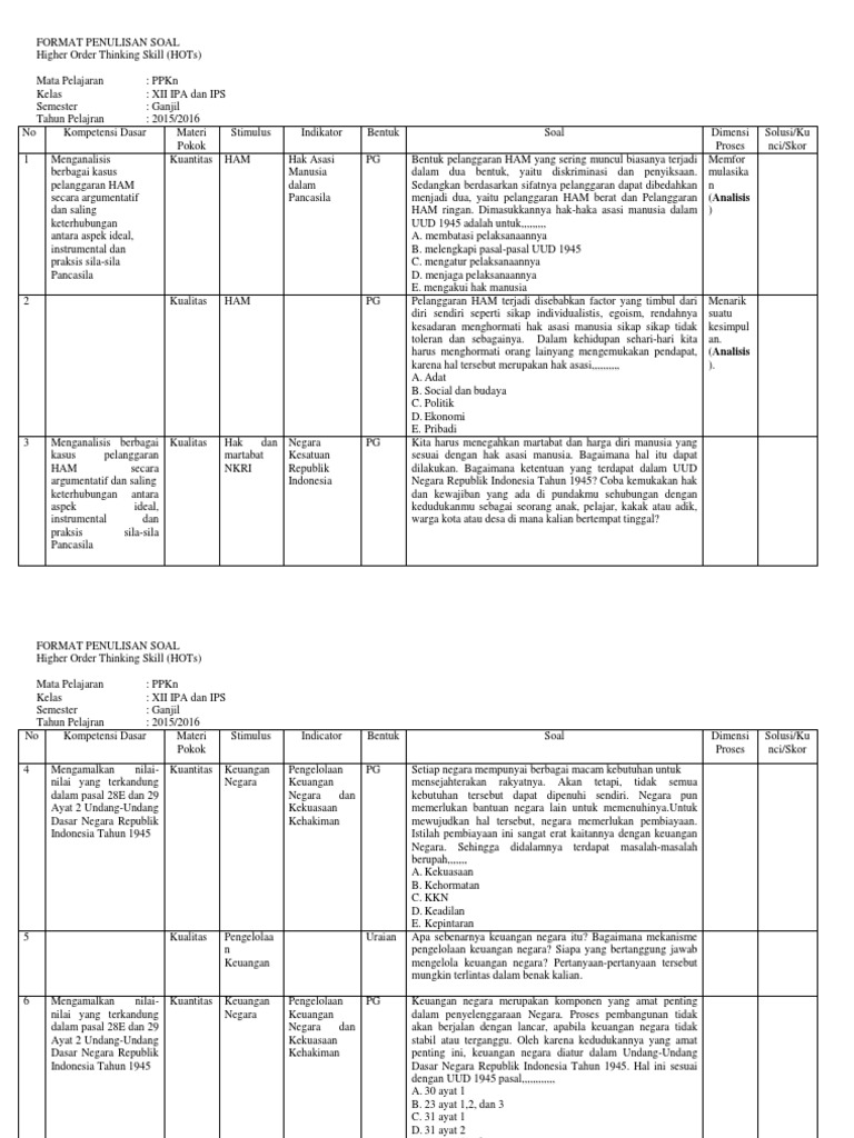 Contoh Bentuk Soal Hots Pkn Jawabanku Id
